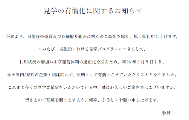 2024/10/28「風と海の学校 あきた」施設見学プログラムの受付を開始いたしました。